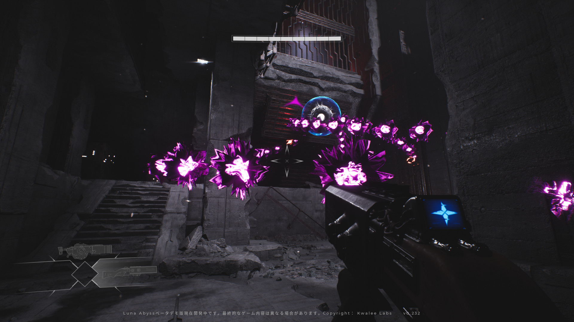 【Luna Abyss Demo】(ちょいネタばれ) ストアページ「『Luna Abyss』は、プラットフォームと銃弾地獄の戦闘が満載のシングルプレイヤーで楽しめるストーリー駆動型アクションアドベンチャーゲーム。謎の預言と実刑に巻き込まれたルナの囚人Fawkesの旅を体験せよ」 独特の世界観と弾幕シューティングが特徴のFPSアドベンチャーゲーム。デモながら既に完成度の高さが伺える。 |